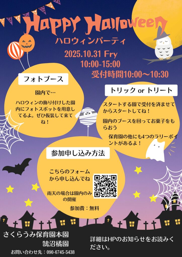 さくらうみ保育園本園・鵠沼橘園でハロウィンパーティーを開催します!