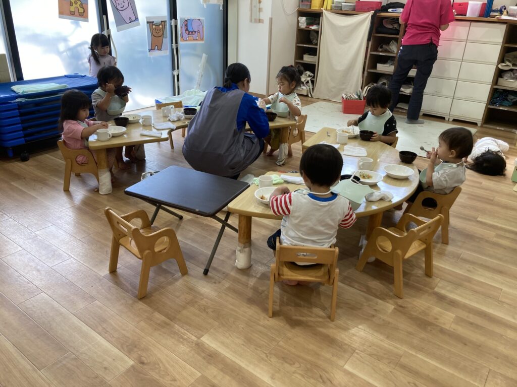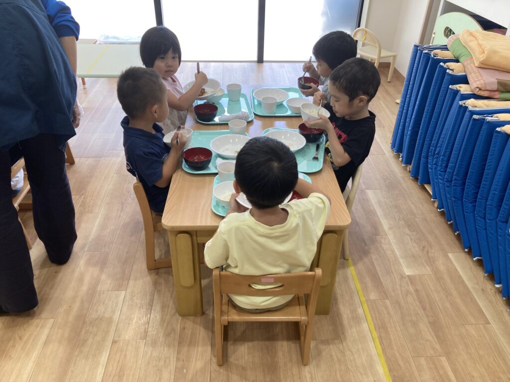 昼食の時間では給食を「よく噛んで」食べていました!