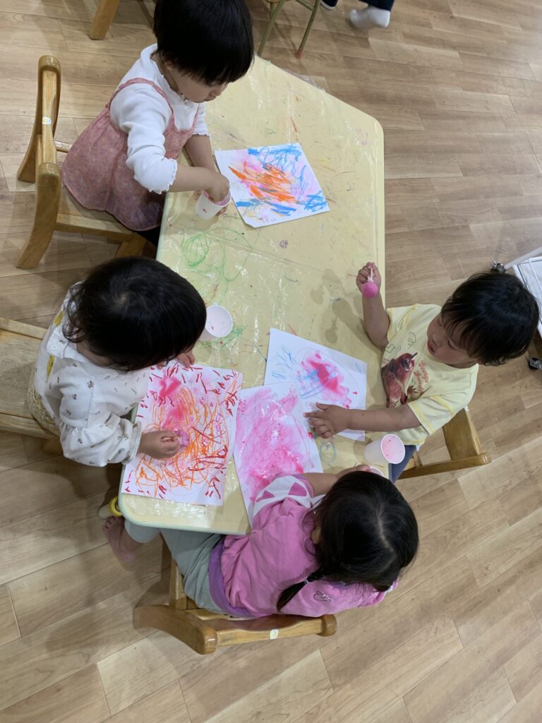 楽しそうに思い思いの色を、真っ白なキャンバスに描いていました。