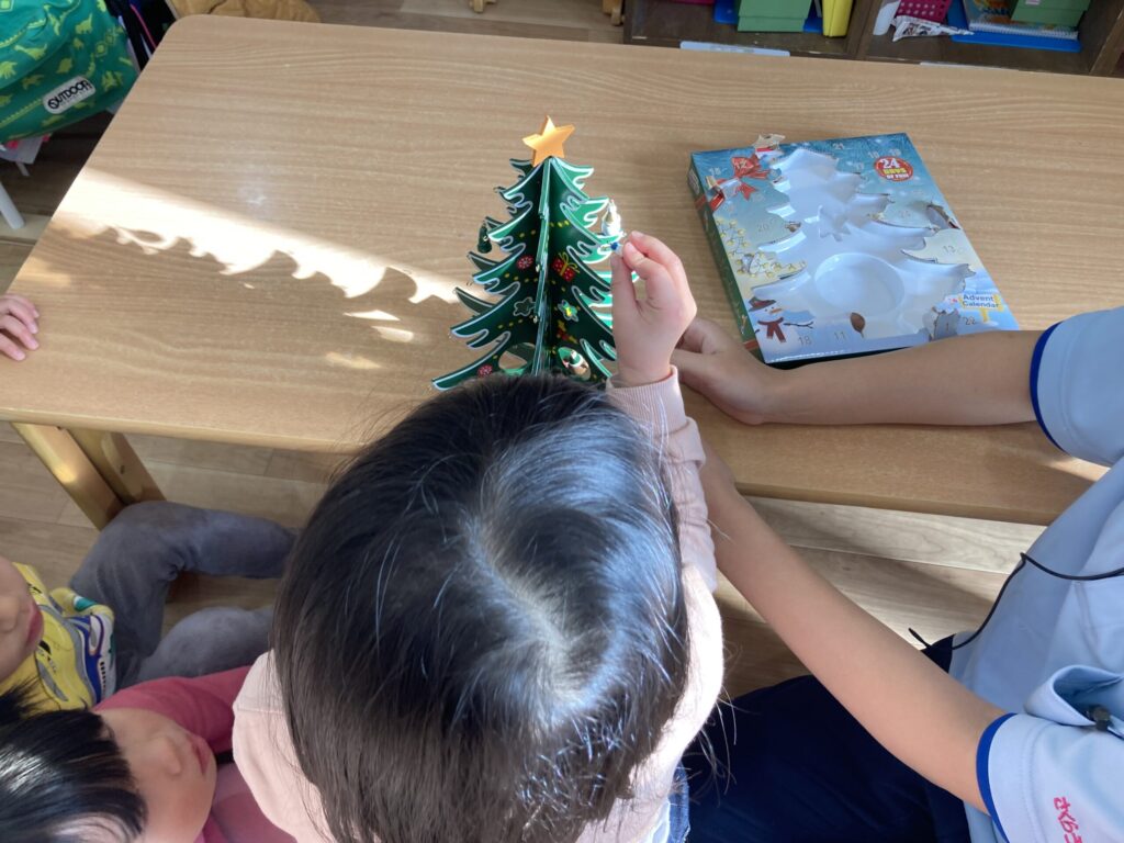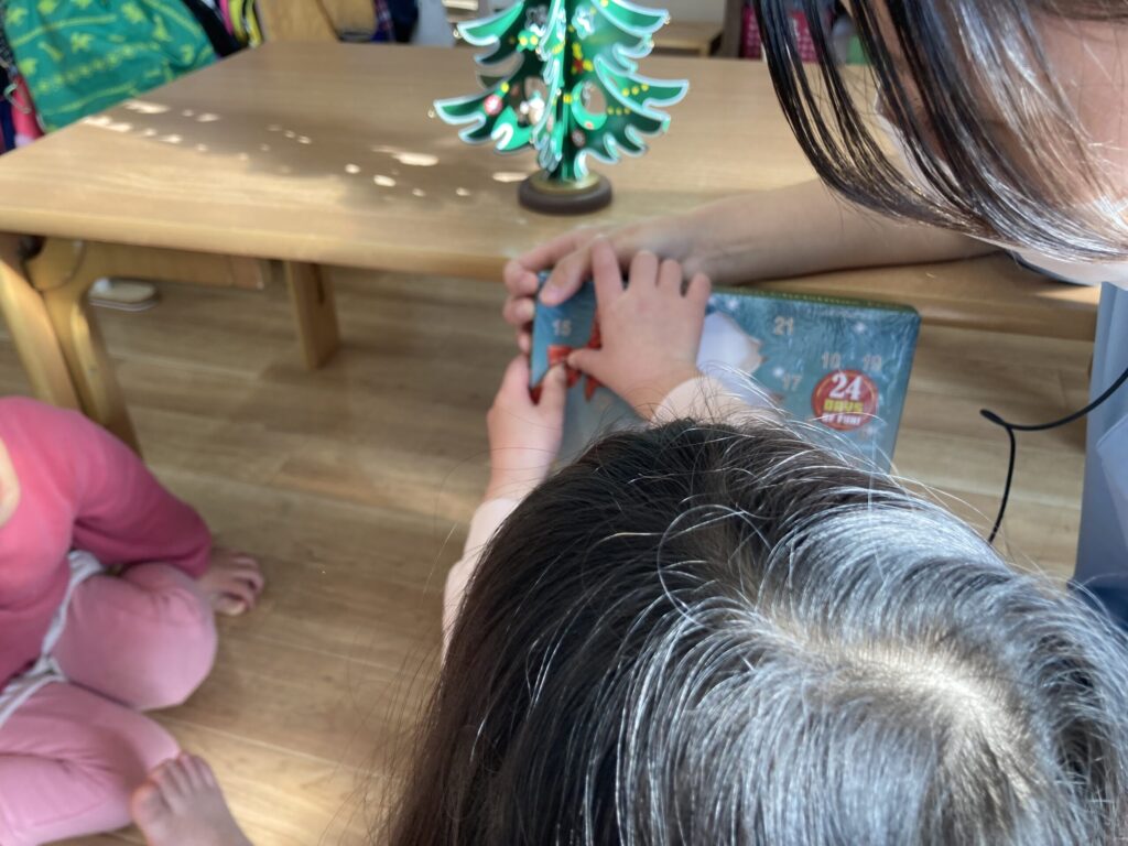 幼児のクラスは、園長先生からのプレゼントでアドベントカレンダーがスタートしました!