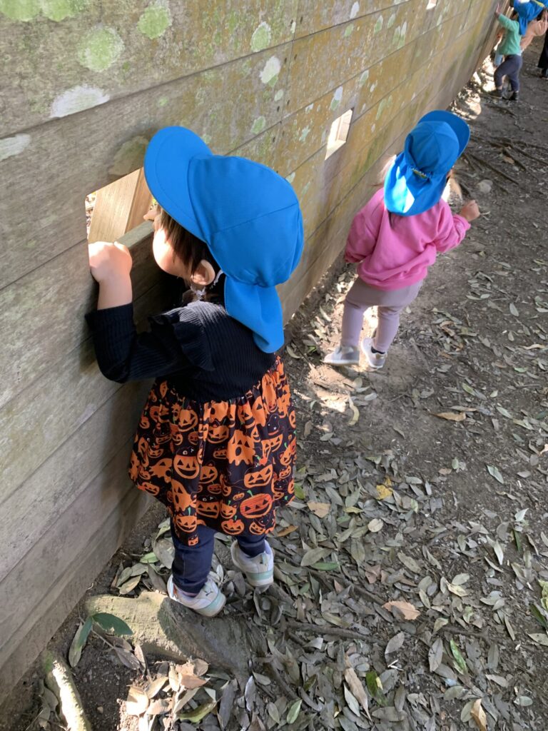 壁の向こうには「がおー」ライオンさんがいるかも!と保育士が話すと