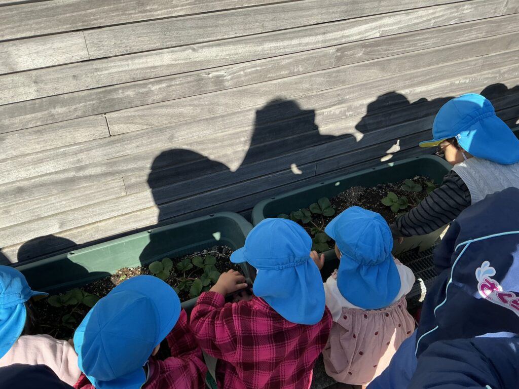 本日は以前苗植えをしたいちごの苗を観察しました!