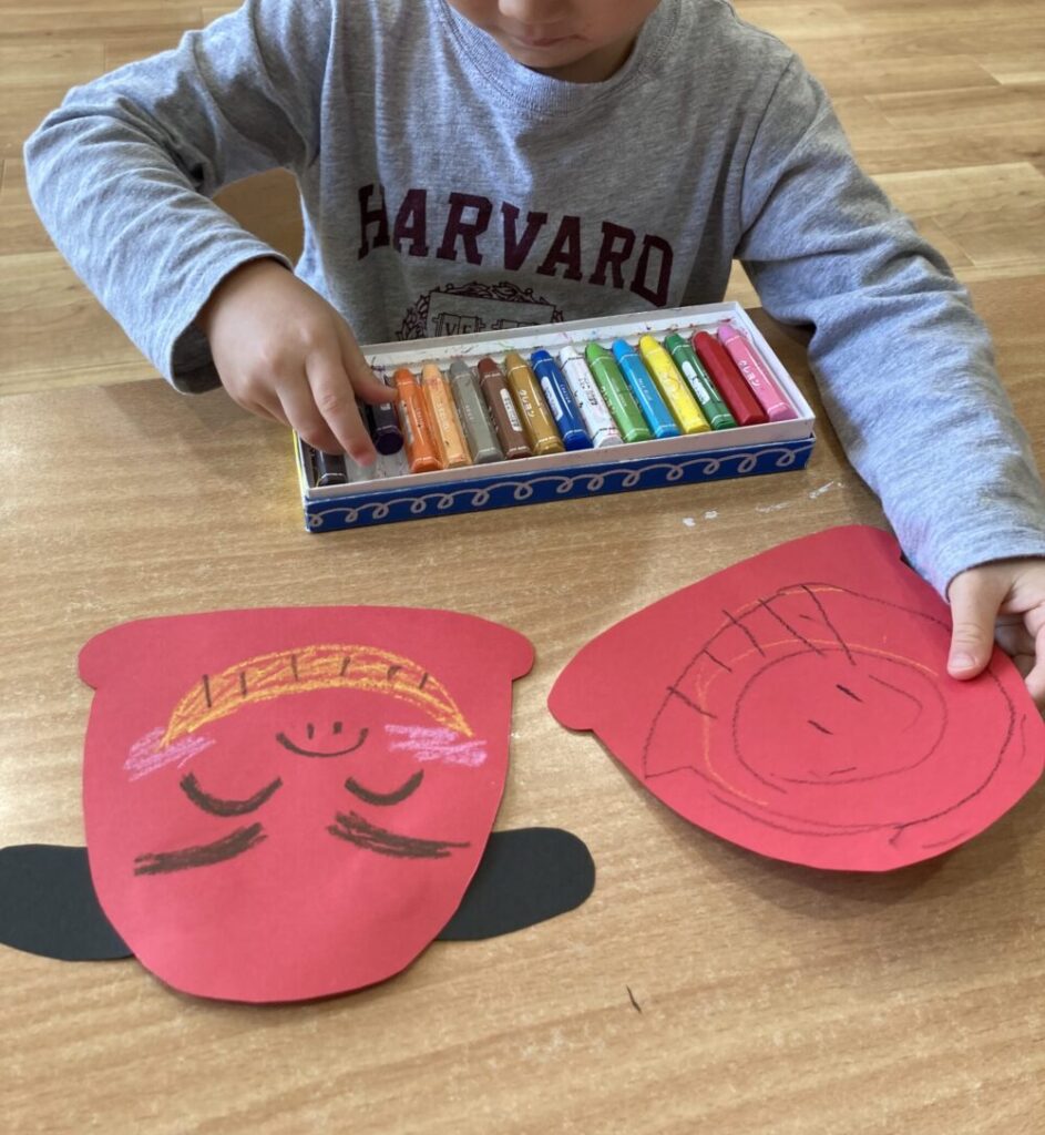 クレヨンで好きな顔を描いていきます。
