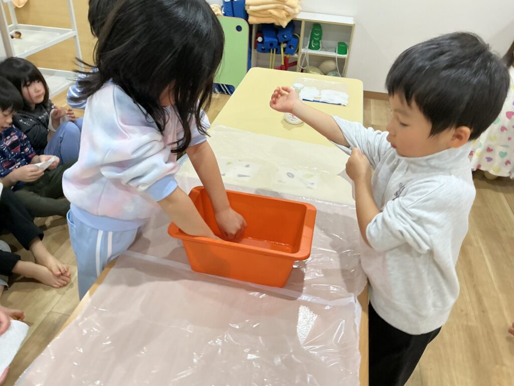 破れないように慎重に作業をして終わると「できた!」と達成感を感じている様子でした。
