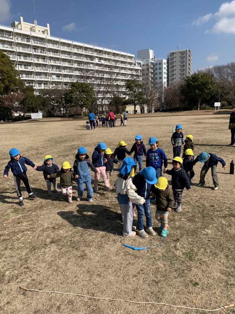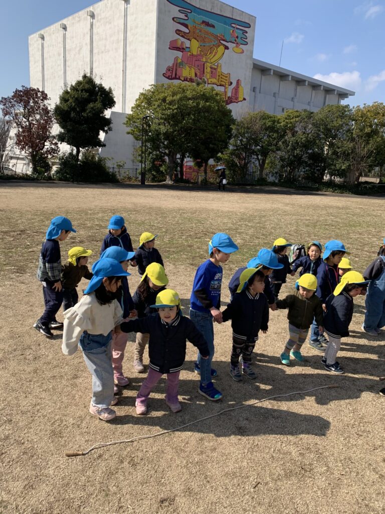 5歳児のみんなは、1歳児クラスと一緒に公園に遊びに行くことにしました!