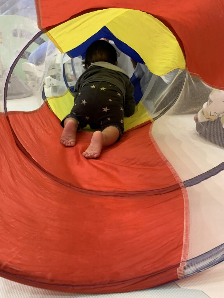 BLOG ブログ HOME ブログ 【鵠沼橘園】トンネルくぐったら… 2025.11.21 スタッフブログ 【鵠沼橘園】トンネルくぐったら… ハイハイが上手な8か月のお友だち。 くぐった先には同じクラスの男の子がのぞいて手招きしています。 なんだかこわいな…とおそるおそるくぐってみると… ぐんぐん行くよー お友だちのところにたどり着きました!! かわいらしい後ろ姿でした・・・ [addtoany] 前の記事へ 記事一覧 次の記事へ